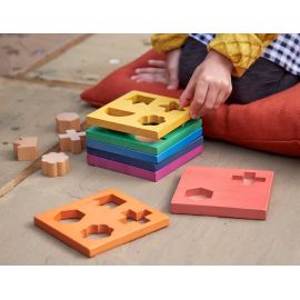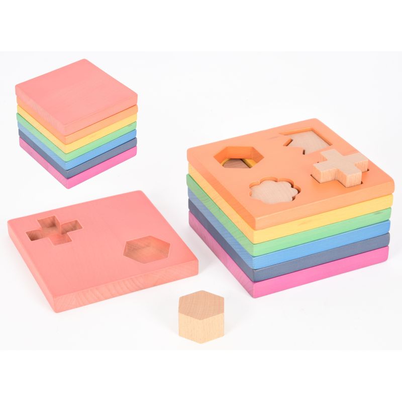 - Encaja las diferentes tablas en sus formas correspondientes: cruz, un hexágono, una corona, una flor, un semicírculo, una estrella, un hongo, un corazón, un cuadrado, un rectángulo, un círculo y un triángulo.
