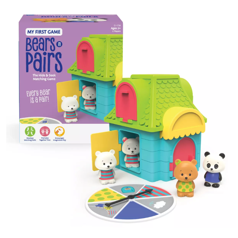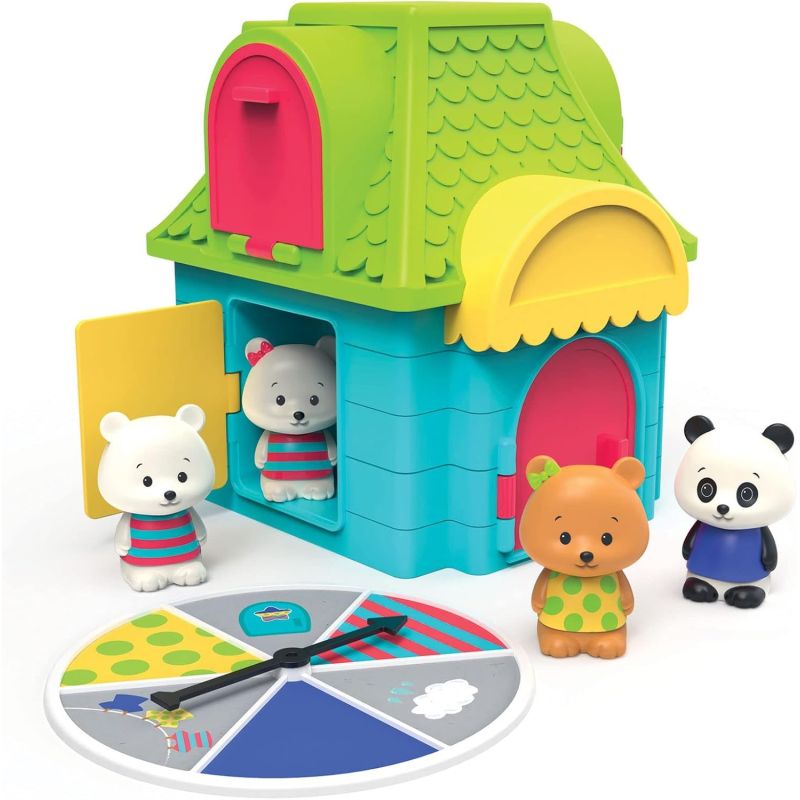 Contenido: 1 casa de plástico, 6 ositos de plástico, 1 ruleta de plástico y guía con tres opciones de juego.
