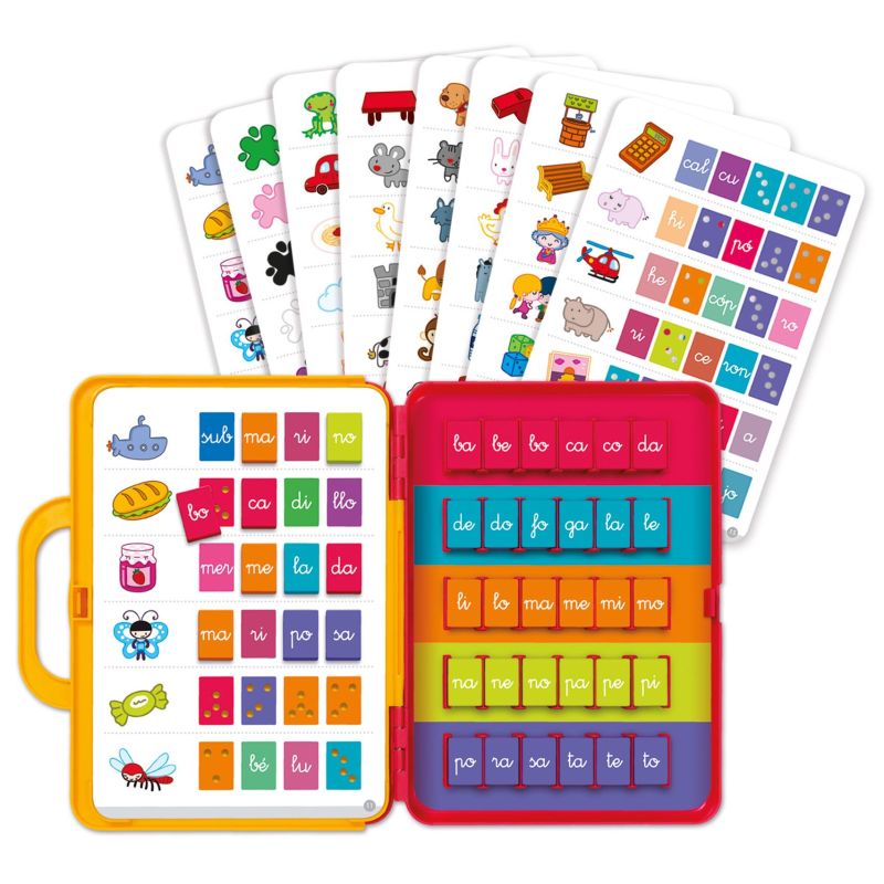 Contenido: 15 láminas con ejercicios, fichas de plástico con letras, maletín e instrucciones.