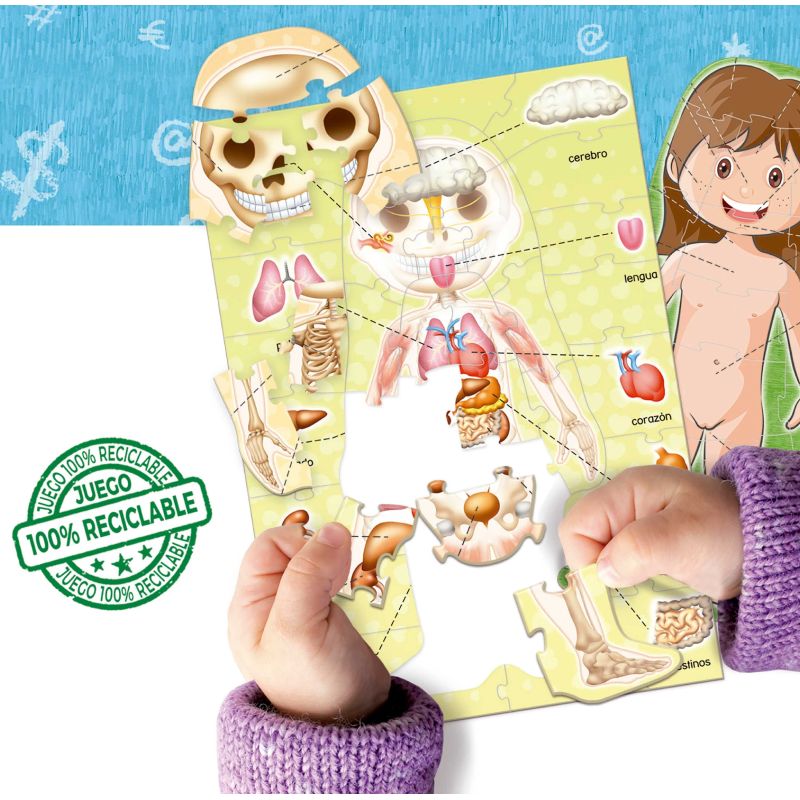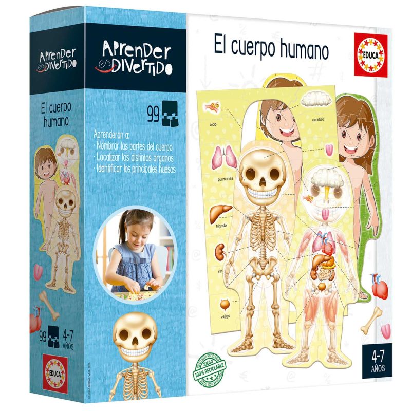 ¡Descubre todo sobre el cuerpo humano con este fantástico puzzle! Aprender es Divertido es una colección de juegos especialmente creada para acompañar al niño/a en su proceso de crecimiento y aprendizaje, potenciando el desarrollo de sus capacidades, habilidades y personalidad. - Favorece la concentración y la observación. - Fomenta la coordinación y la motricidad. - Estimula la percepción visual. - Desarrolla el lenguaje. - Comienza el aprendizaje sobre el cuerpo humano siguiendo las diferentes actividades propuestas. - Descubre las principales partes del cuerpo humano, los órganos y los huesos. Especificaciones: Edad recomendada: de 4 a 7 años. Contenido: 4 puzzles. 1 marco de 33 cm x 21,5 cm. Incluye APP gratuita.
