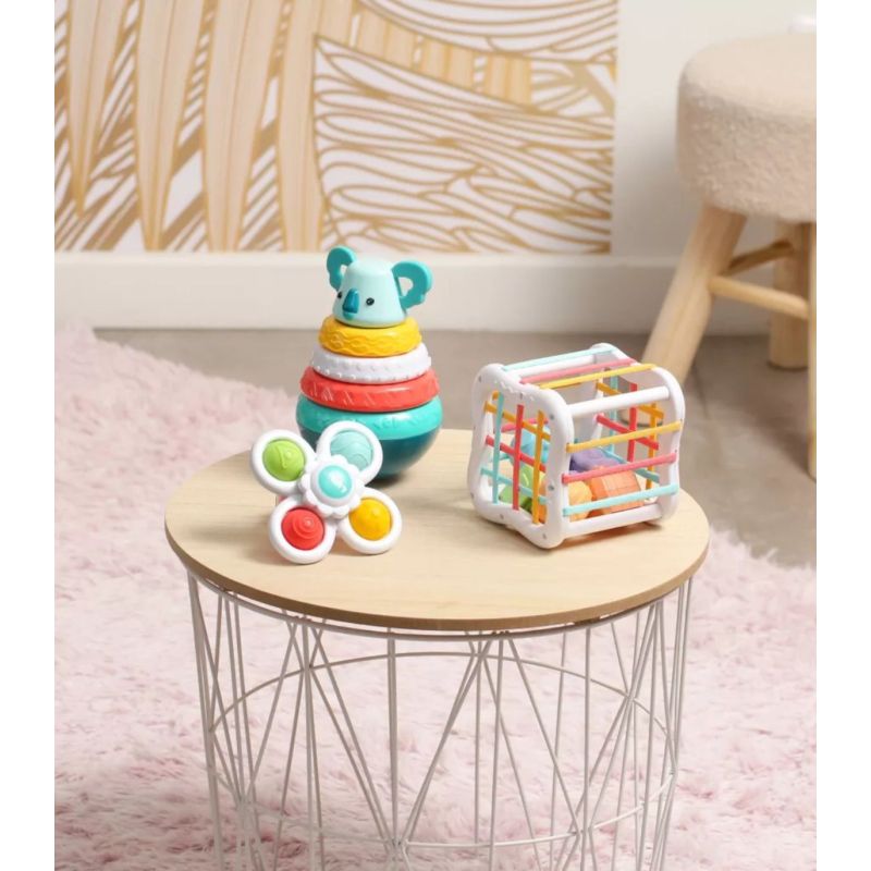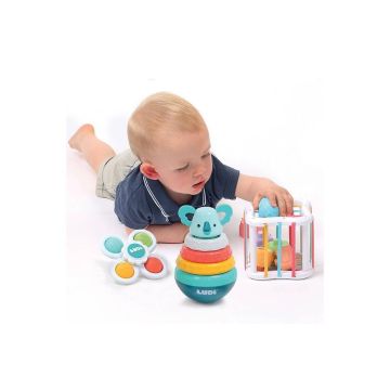 - El simpático tentetieso koala se compone de 3 anillas con diferentes texturas y sonidos.