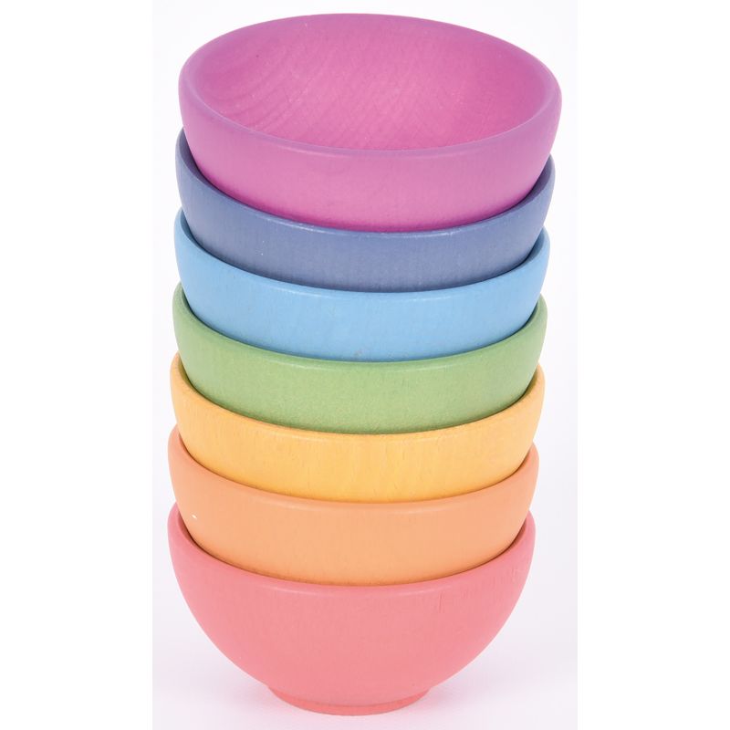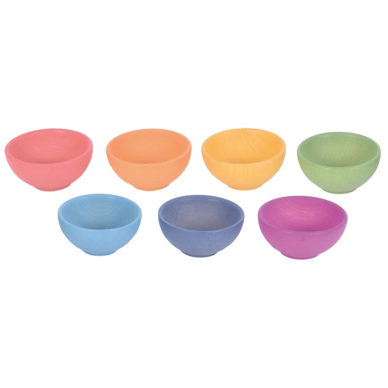 7 cuencos de 9 cm de diámetro, realizados en madera.