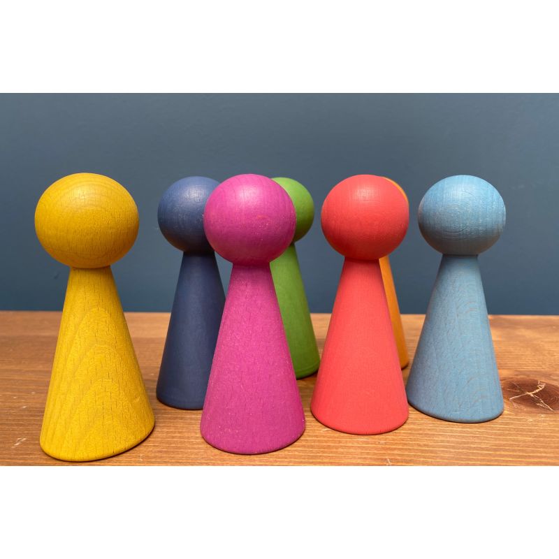 Realizados en madera policromada en colores del arcoíris.